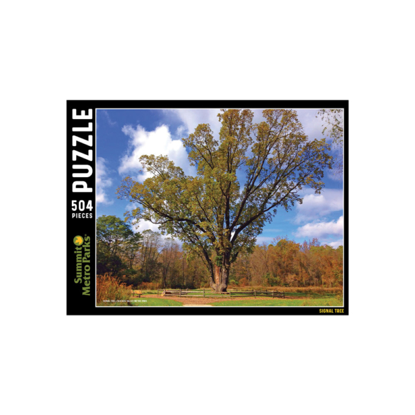 Bring an element of Summit Metro Parks home with this 504 piece puzzle featuring the Signal Tree in Cascade Valley Metro Park.