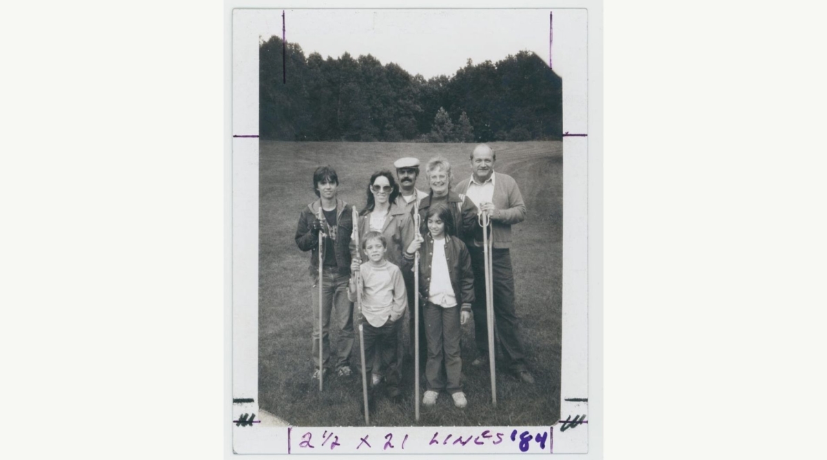 Hikers since 1980, the Hawkins family was featured in the October 1984 issue of Green Islands. Pictured left to right, son David S., mom Kayann, dad David and in front Tom and Sheila, finish their hike with Phyllis and Gene Leach. Kayann and David continue to complete the Spree for All and Fall Hiking Spree each year.