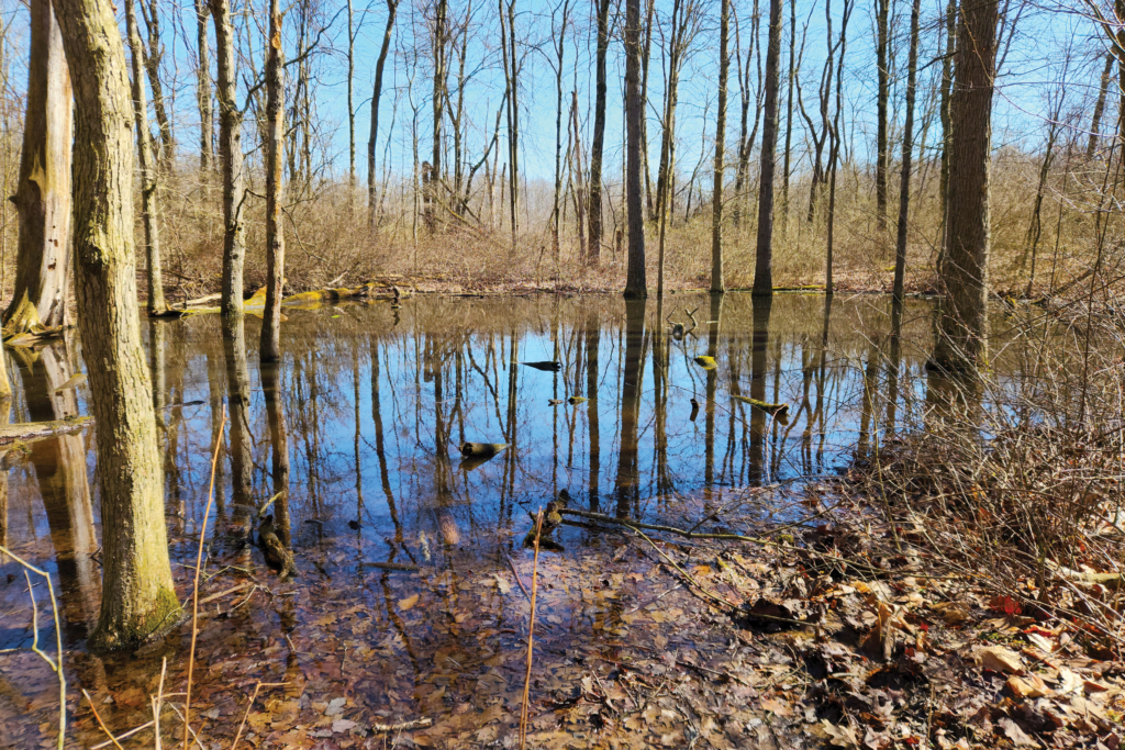Once they hatch, a high diversity of insect larvae serve as an abundant food source as these amphibians grow, metamorphosize and prepare for life on land. Their transformation is often a race against time as these pools fade away into the leafy landscape of the forest floor by midsummer. Why? They’re shallow enough to fully dry out as sunlight and temperatures increase throughout the season. This is why you may hear vernal pools referred to as “ephemeral,” meaning temporary.