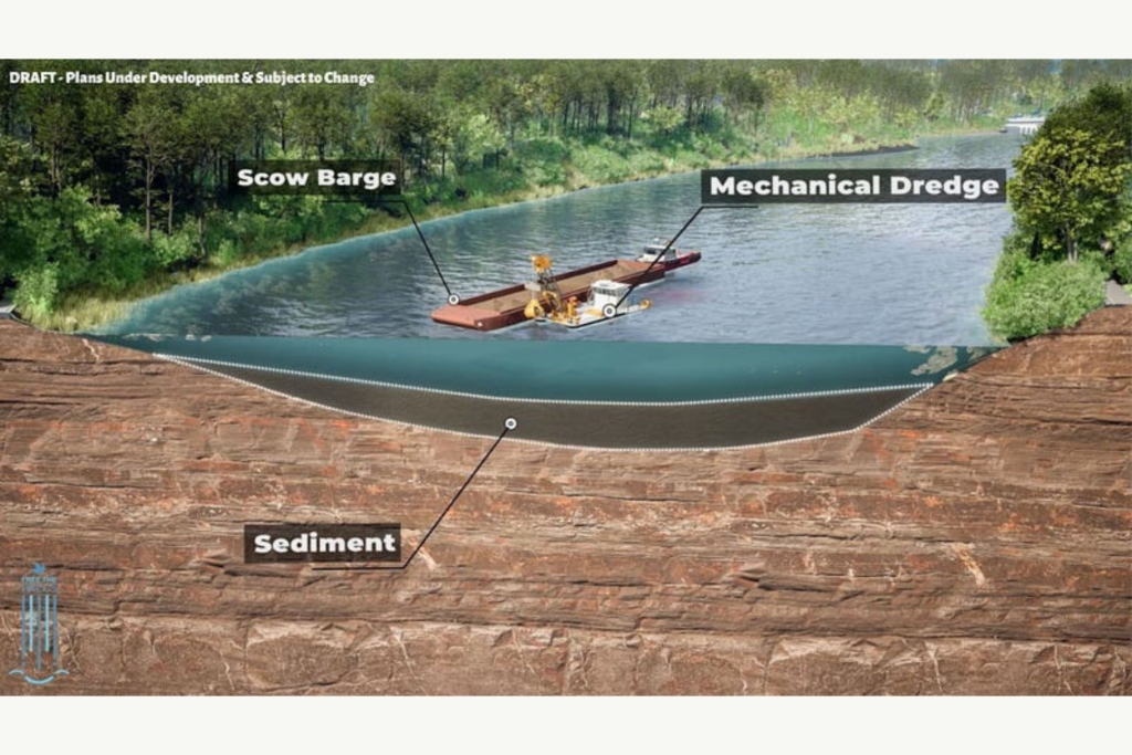 U.S. EPA sediment scientists found that contaminants in the sediment reflect our area’s industrial past, including polycyclic aromatic hydrocarbons (PAHs), polychlorinated biphenyls (PCBs), heavy metals, oil and grease, and pesticides. This sediment will be removed and pumped through a temporary pipeline alongside Highbridge Trail to a sediment disposal area at the Chuckery Area of Cascade Valley Metro Park, about two miles away. It will then be mixed with cement for stabilization.