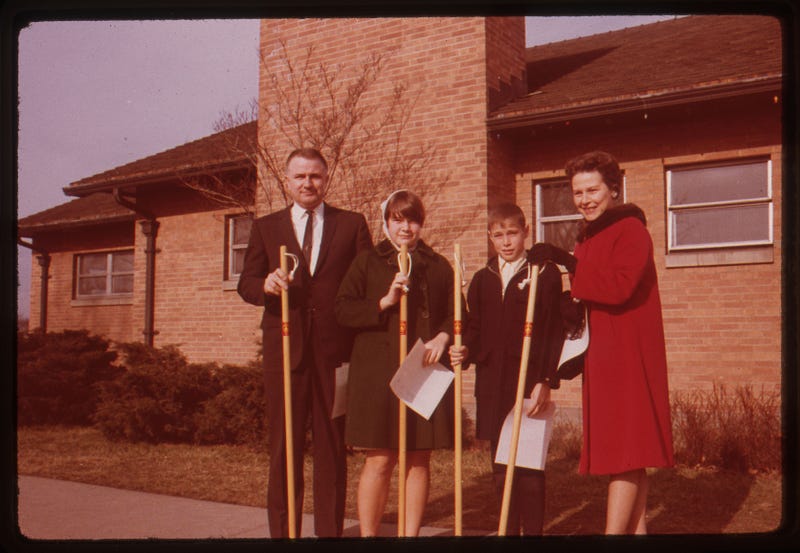 If you are old enough to be a Heritage Hiker (one who completed their first year of the Fall Hiking Spree during its first decade), then you are likely to remember broadcaster Paul Harvey. His daily stories on the radio shared the backstories, or the “rest of the story,” of many, much like the stories of the thousands of hikers who have participated in the Summit Metro Parks Fall Hiking Spree for these past 59 years. After nearly six decades of sprees, there are countless tales to recall, and happy surprises when vintage photos are identified and their subjects are located. Last Fall, in the September/October issue of Green Islands magazine, we published a photo of Bert Szabo, our first naturalist and one of the originators of the spree, awarding hiking staffs and certificates in December 1967. Alert reader Angie Tryon noticed the photo when it was shared on social media, identifying the boy as her now-husband and his dad. Grandson David Tryon is now the proud owner of his grandfather’s staff, which is now adorned with many more shields earned over the decades.
