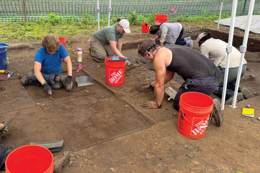 Cultural Resources staff and The University of Akron archaeological field school students excavating in the 2025 project area