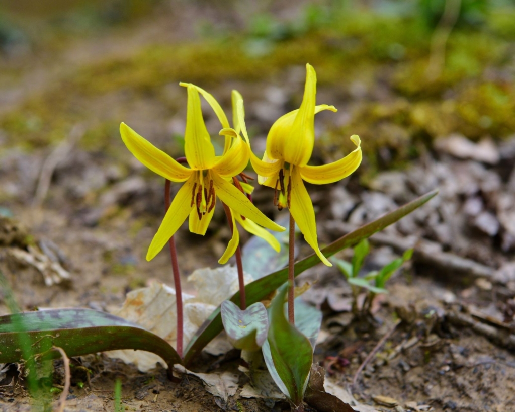 Yellow trout lilies are in the lily family and grow from a bulb that is very similar, albeit smaller, than the ones that tulips arise from in yards and gardens across Northeast Ohio. Trout lily flowers are composed of six showy yellow “tepals,” essentially a combination of petals and sepals. Six stamens (male parts) are easily seen protruding from the center. Trout lily leaves are quite botanically interesting too with their molted brown and green coloring. A close relative, the white trout lily (E. albidum) can also be found in Summit Metro Parks!