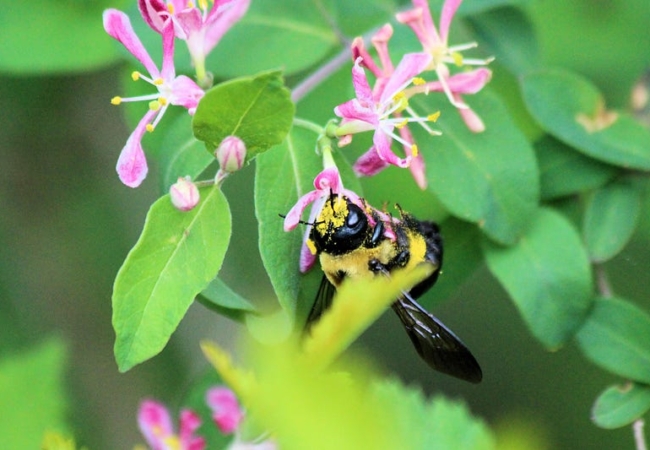 Bee covered in pollen (photo by volunteer Tami Hill)Take a look at your back yard or a nearby garden. . . .